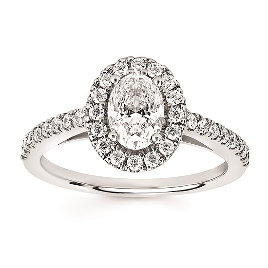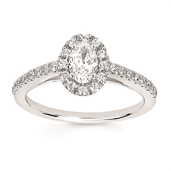 Halo Bridal: 5/8 Ctw. Diamond Halo Semi Mount Available For 1-1/4 Ct. Oval Center Diamond In 14K Gold Halo Bridal